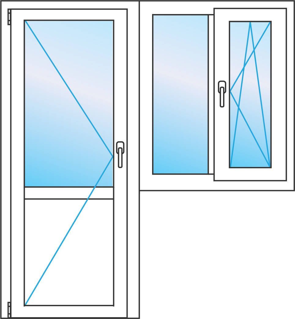 Балконный блок дверь 700*2100 мм, окно с одной створкой 1300 на 1400 мм . Цена. Профиль WHS 60 от Века.