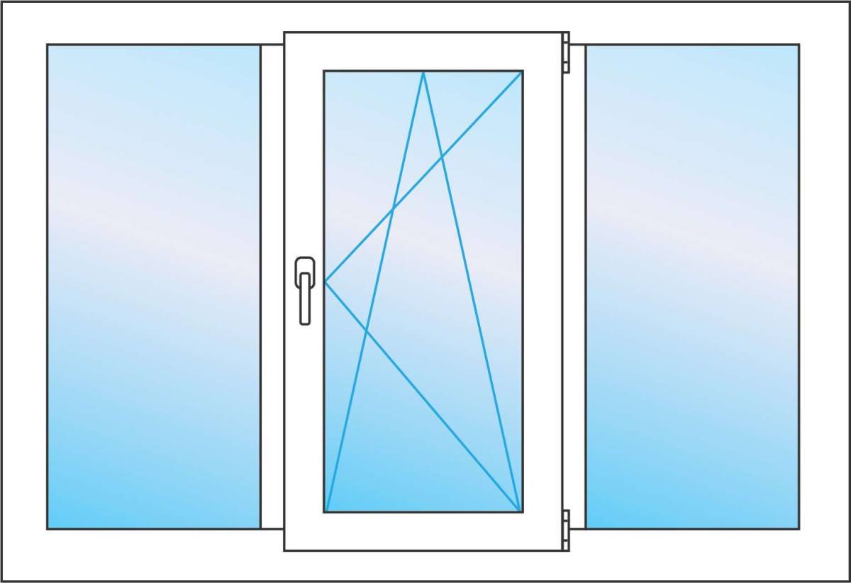 Окно 1800 * 1400 трехстворчатое с одной створкой. Цена. Профиль WHS 72 от Века.