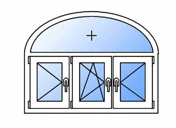 Тип открывания: Поворотное левое / поворотно-откидное левое / поворотное правое арочное.